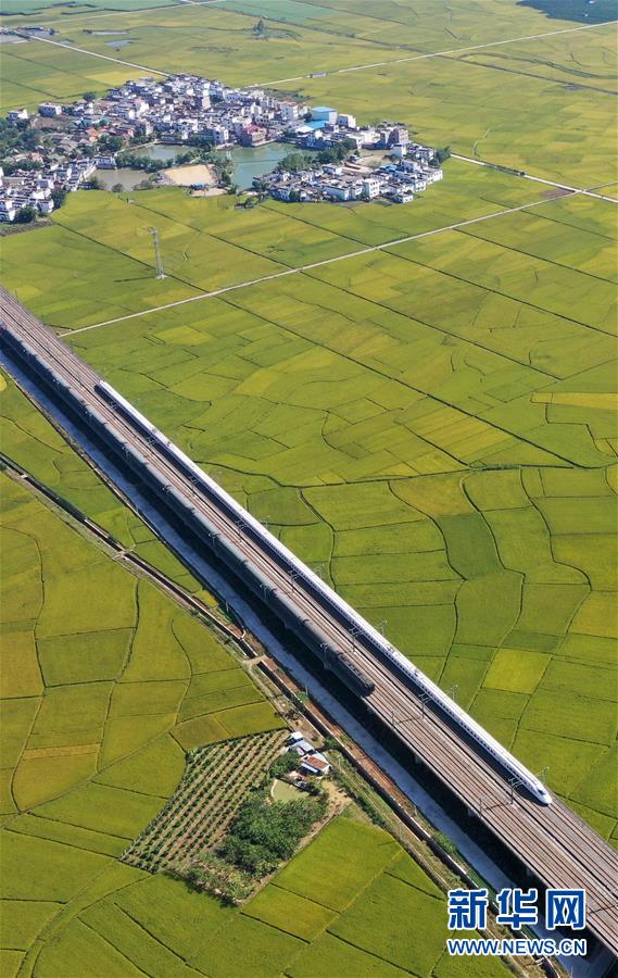 眼下,廣西賓陽縣古辣鎮(zhèn)大面積稻田進(jìn)入收獲期,一列列南來北往的動(dòng)車從稻田間飛馳而過,構(gòu)成一幅幅美麗的豐收?qǐng)D畫。