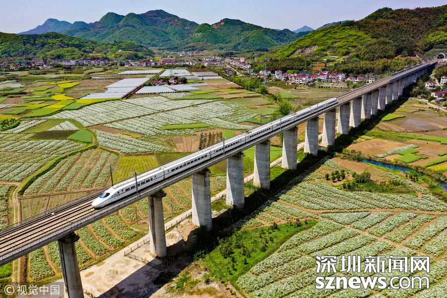 2019年4月8日,一列高鐵列車從京福高鐵安徽銅陵段一片盛開的鳳丹花海中駛過。隨著氣溫回升,安徽省銅陵市境內(nèi)的鳳丹競(jìng)相綻放,高鐵列車穿行其間,成為春日里一道美麗的風(fēng)景線。