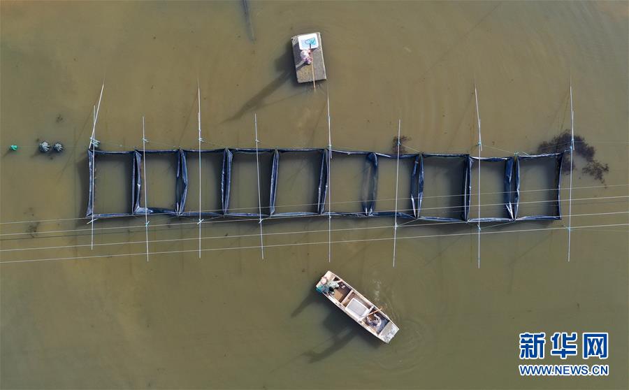 江西省南昌市新建區(qū)象山鎮(zhèn)河林村的農(nóng)戶正在大閘蟹養(yǎng)殖基地進(jìn)行捕撈(10月29日無人機(jī)拍攝)。 時下正值大閘蟹收獲的季節(jié),江西省南昌市新建區(qū)象山鎮(zhèn)河林村的村民忙著進(jìn)行大閘蟹的捕撈、包裝和外銷工作。近年來,當(dāng)?shù)匾劳休爡^(qū)內(nèi)河道縱橫、水田眾多的資源優(yōu)勢,支持鼓勵當(dāng)?shù)剞r(nóng)村引進(jìn)發(fā)展大閘蟹養(yǎng)殖業(yè),目前已有大閘蟹特色養(yǎng)殖基地300余畝,年產(chǎn)值超過200萬元,為當(dāng)?shù)剞r(nóng)戶開辟一條特色養(yǎng)殖的致富路。 新華社記者 彭昭之 攝