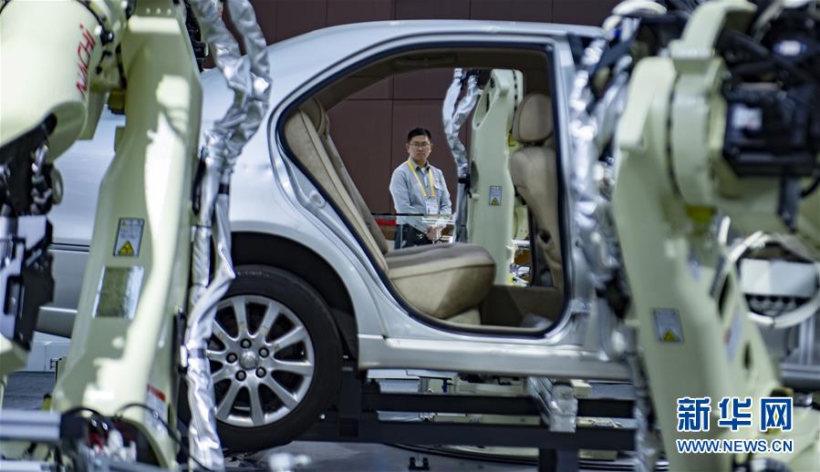 11月5日在第二屆進博會裝備展區(qū)日本那智不二越公司展臺拍攝的超高速點焊SRA系列機器人。新華社記者普布扎西攝
