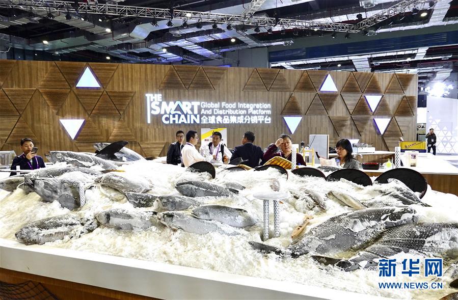 11月5日,參觀者在食品及農(nóng)產(chǎn)品展區(qū)全球食品集成分銷平臺(tái)參觀。新華社記者才揚(yáng)攝