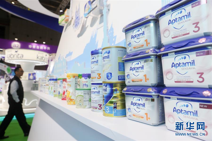 11月5日,在第二屆進博會食品及農產品展區(qū),參觀者從達能展臺經過。新華社記者丁汀攝