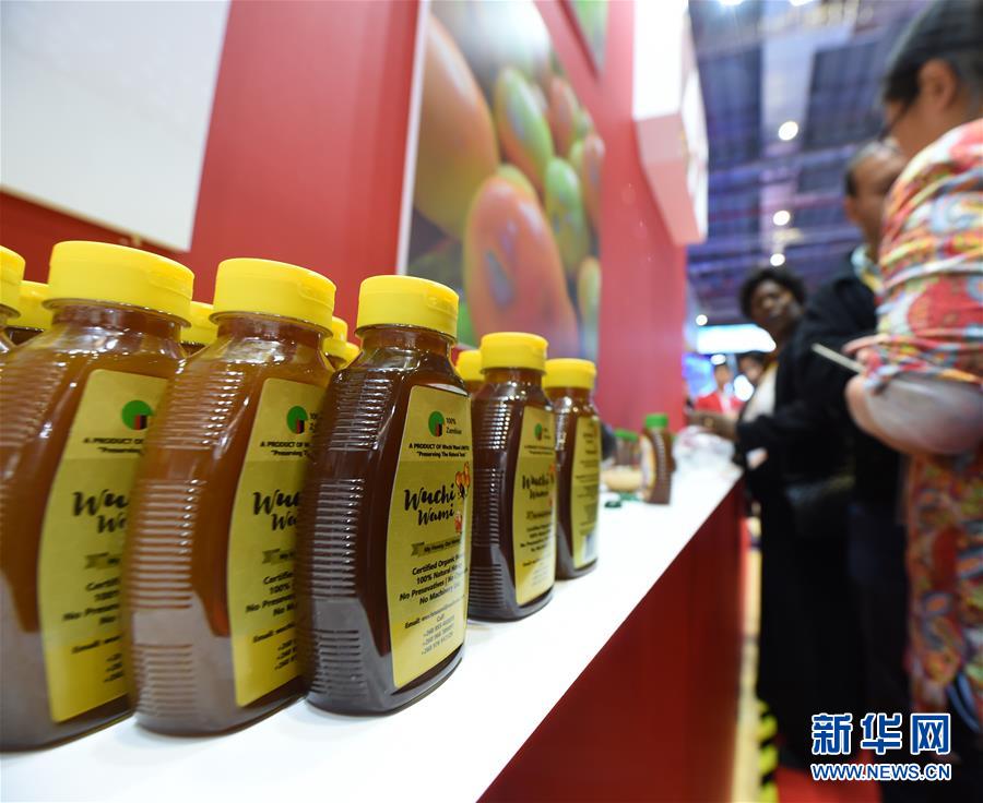 參觀者在第二屆進(jìn)博會(huì)上了解贊比亞蜂蜜(11月6日攝)。新華社記者尹炣攝
