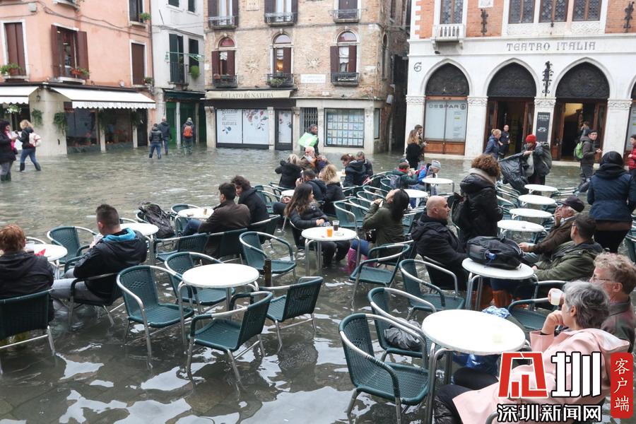 威尼斯水位再度觸及1.5米 游客水中用餐沉船書(shū)店持續(xù)被淹