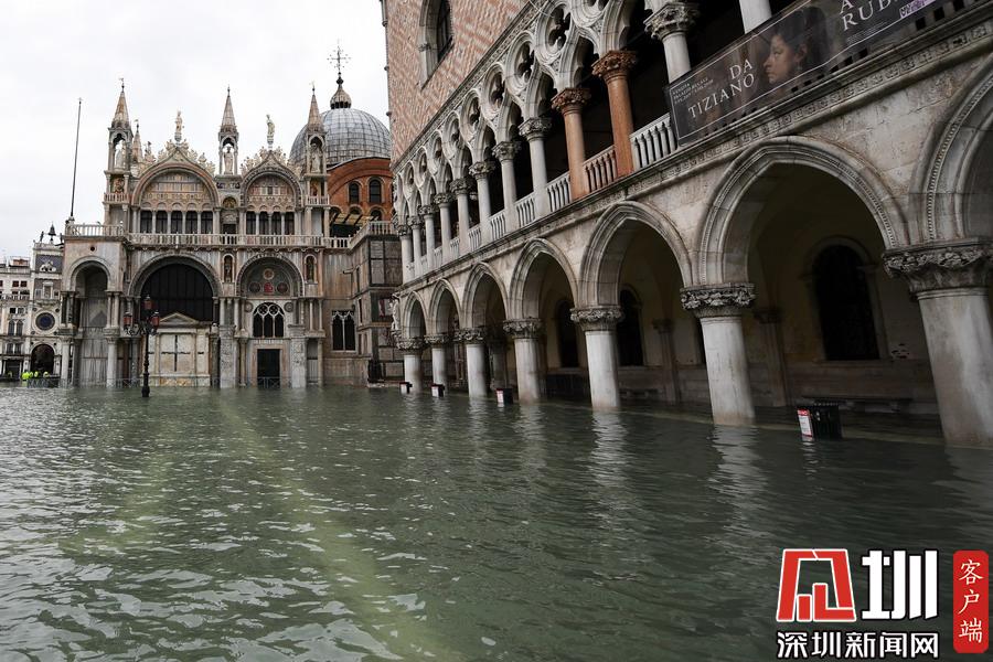 17日,威尼斯迎來一周內的第三次罕見大潮,水位再度觸及1.5米。