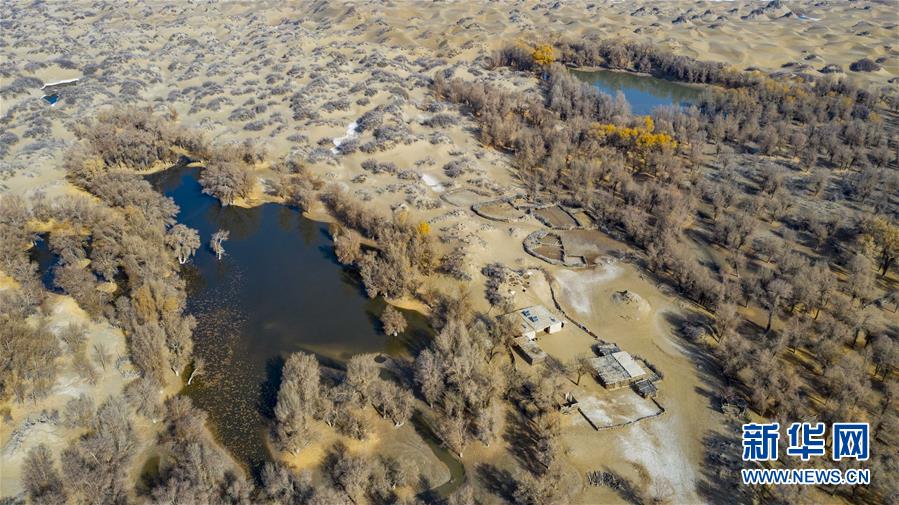 這是在克里雅河沿岸拍攝的一處民居(11月16日無人機(jī)拍攝)。 新華社記者 胡虎虎 攝
