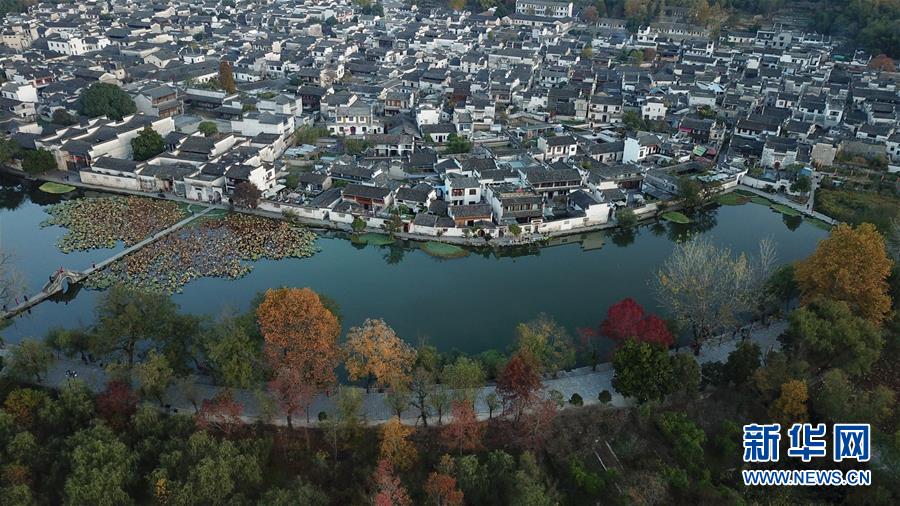 這是11月15日無人機拍攝的宏村風(fēng)景區(qū)晨景。新華社記者韓曉雨攝