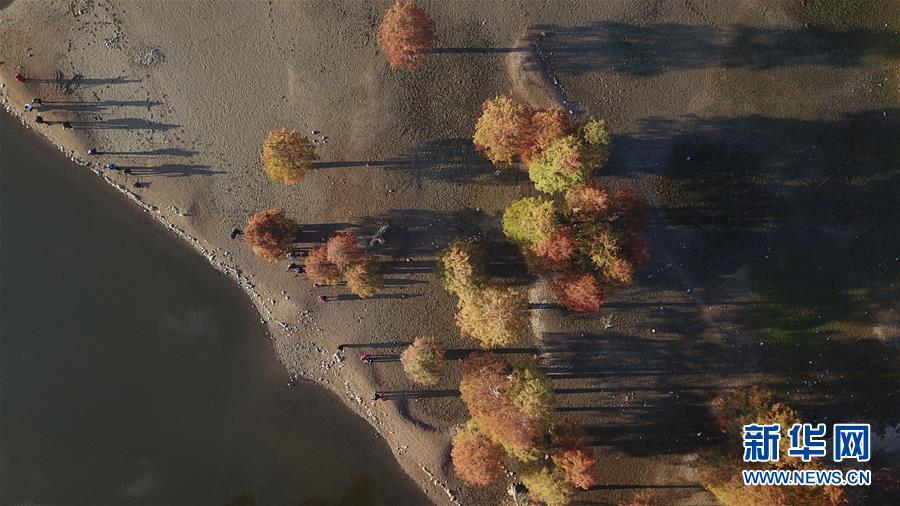 11月14日無(wú)人機(jī)拍攝的安徽黟縣奇墅湖晨景。新華社記者張端攝
