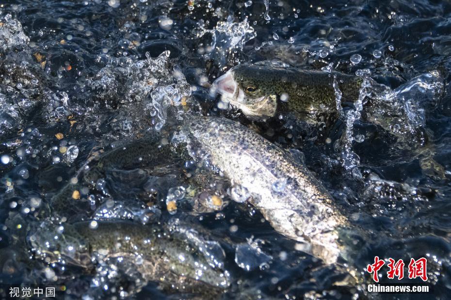 當(dāng)?shù)貢r間2019年11月17日,美國加州薩克拉門托,實拍洄游產(chǎn)卵的鮭魚。