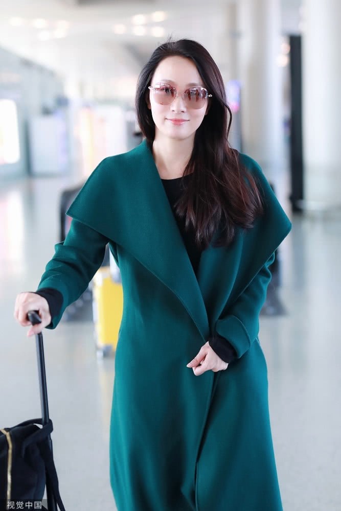 47歲陶虹獨自現(xiàn)身機場 穿綠大衣溫婉大方 面對鏡頭笑容親切