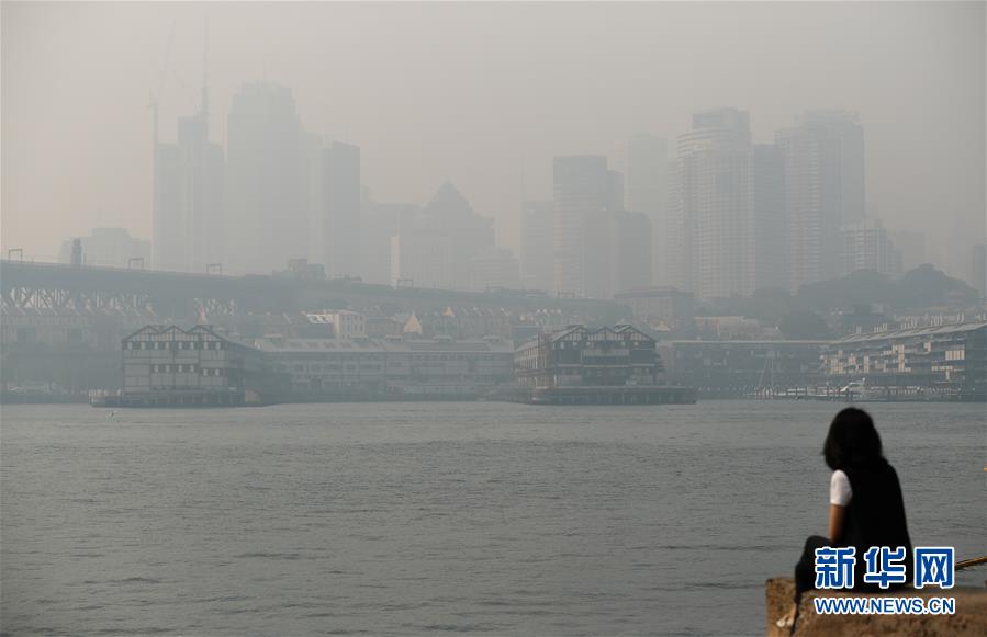 11月21日,在澳大利亞悉尼,林火造成的濃煙籠罩城市。澳大利亞東部近期林火肆虐,悉尼所在的新南威爾士州自進入今年林火季以來,過火面積超過100萬公頃。林火造成悉尼濃煙圍城,市民生活受到影響。新華社記者白雪飛攝