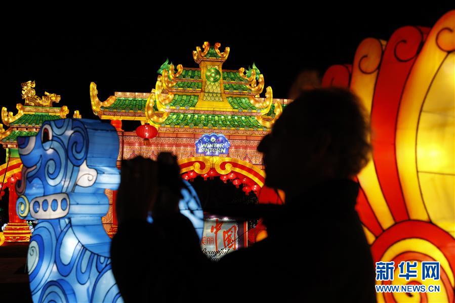 11月20日,在美國紐約斯塔滕島,游客在第二屆紐約花燈游園會上賞燈。當日,第二屆紐約花燈游園會在美國紐約斯塔滕島開幕,50余組各類花燈照亮夜空,吸引觀眾前來賞燈游玩。新華社記者李木子攝