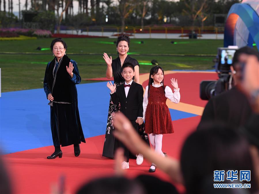 11月23日,田華(右一)、盧燕(左二)等在紅毯儀式上。當日,第28屆中國金雞百花電影節(jié)紅毯儀式在福建廈門舉行。新華社記者張國俊攝