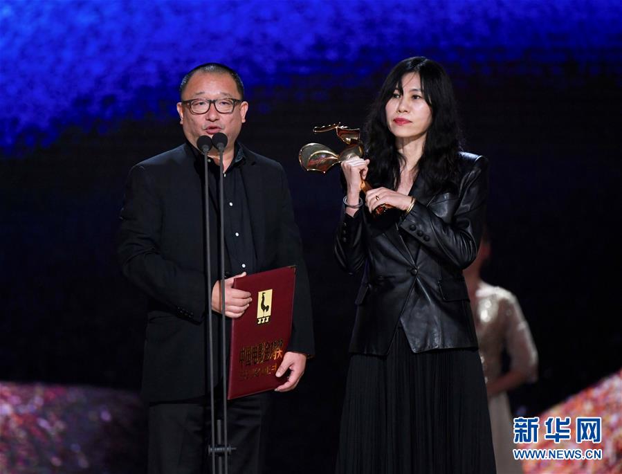 11月23日,電影《地久天長》獲得最佳編劇獎,導(dǎo)演兼編劇王小帥(左)、編劇阿美在頒獎儀式上。當(dāng)日,第32屆中國電影金雞獎頒獎典禮在福建廈門舉行。新華社記者姜克紅攝