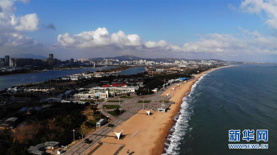 11月22日無人機(jī)拍攝的日照市萬平口海濱風(fēng)景區(qū)。山東省日照市萬平口海濱風(fēng)景區(qū)是當(dāng)?shù)芈糜蔚囊粡垺懊保摼皡^(qū)憑借優(yōu)美的海灘、良好的水質(zhì)吸引了不少游客。新華社記者王凱攝