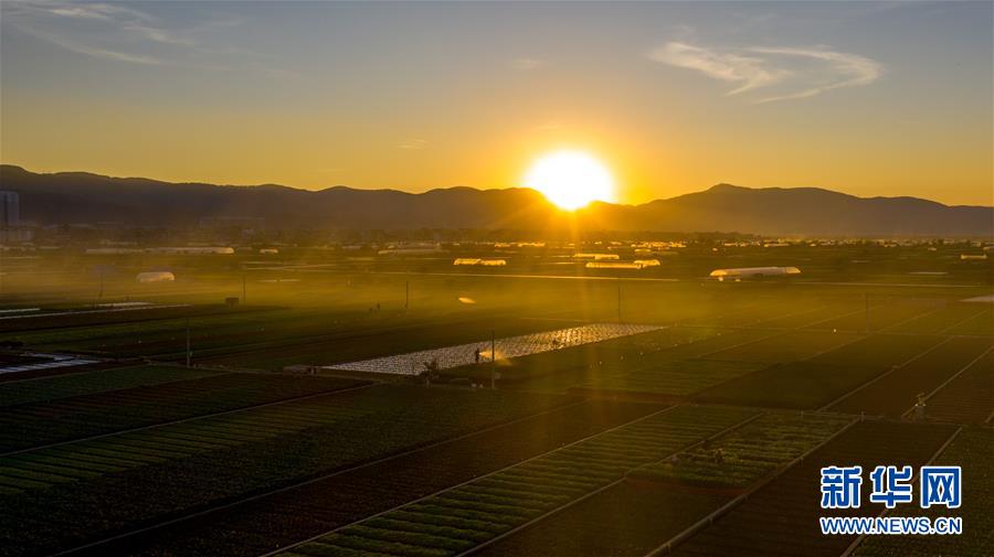 這是云南省玉溪市通??h的田園風(fēng)光(11月23日無人機拍攝)。初冬時節(jié),云南省玉溪市通??h風(fēng)景秀麗,山巒、湖水與農(nóng)田組成了一幅美麗的田園詩畫卷。新華社記者胡超攝