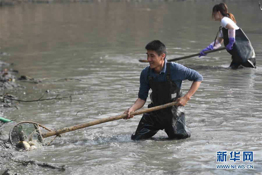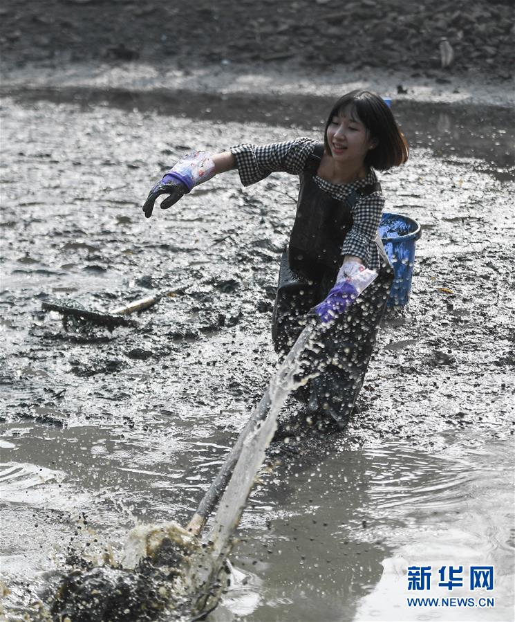 11月24日,游客在西溪濕地體驗(yàn)“干塘”捕魚(yú)。近日在杭州西溪國(guó)家濕地公園,漁夫們抽掉塘水清理淤泥,一批游客借用漁夫們的下水褲,體驗(yàn)“干塘”捕魚(yú)?!案商痢笔呛贾菸飨粠Т迕竦膫鹘y(tǒng)生產(chǎn)習(xí)俗,漁戶在冬季將魚(yú)塘內(nèi)的水抽掉,清挖淤泥,以便第二年可以更好地養(yǎng)魚(yú)。新華社記者黃宗治攝