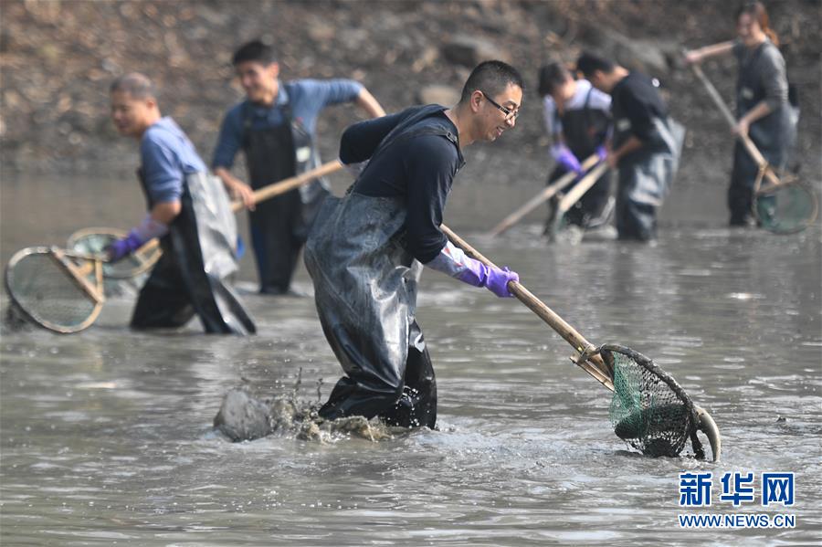 11月24日,游客在西溪濕地體驗(yàn)“干塘”捕魚(yú)。新華社記者黃宗治攝