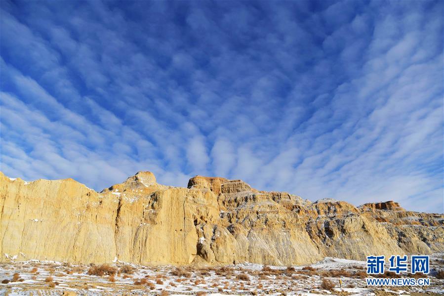 11月26日拍攝的新疆福??h烏倫古湖海上魔鬼城景區(qū)美景。福海縣烏倫古湖海上魔鬼城景區(qū)位于新疆阿勒泰地區(qū)福海縣吉力湖東岸,有著獨(dú)特的雅丹地貌和水域景觀,是當(dāng)?shù)刂穆糜蝿俚?。新華社記者沙達(dá)提攝