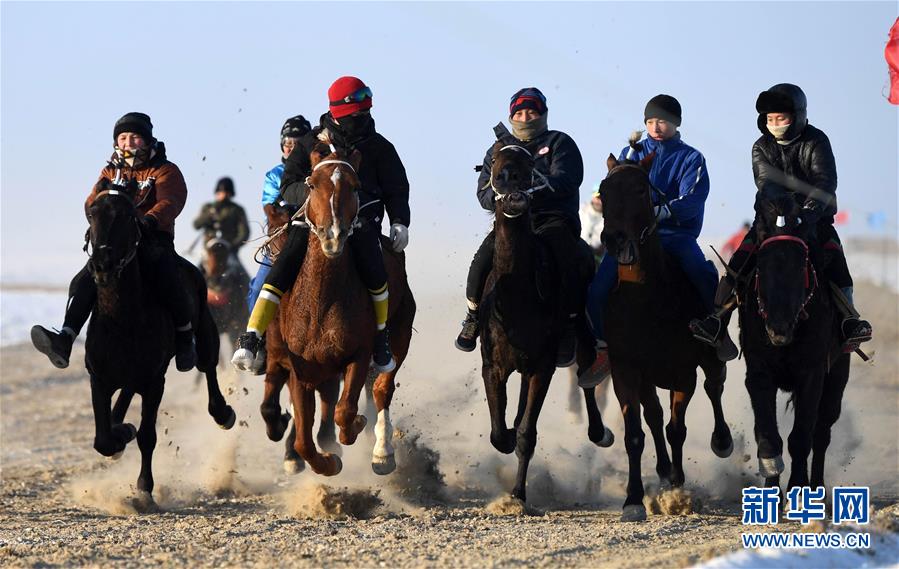 11月26日,在新疆福??h烏倫古湖海上魔鬼城景區(qū),小騎手們參加賽馬比賽。新華社記者沙達提攝