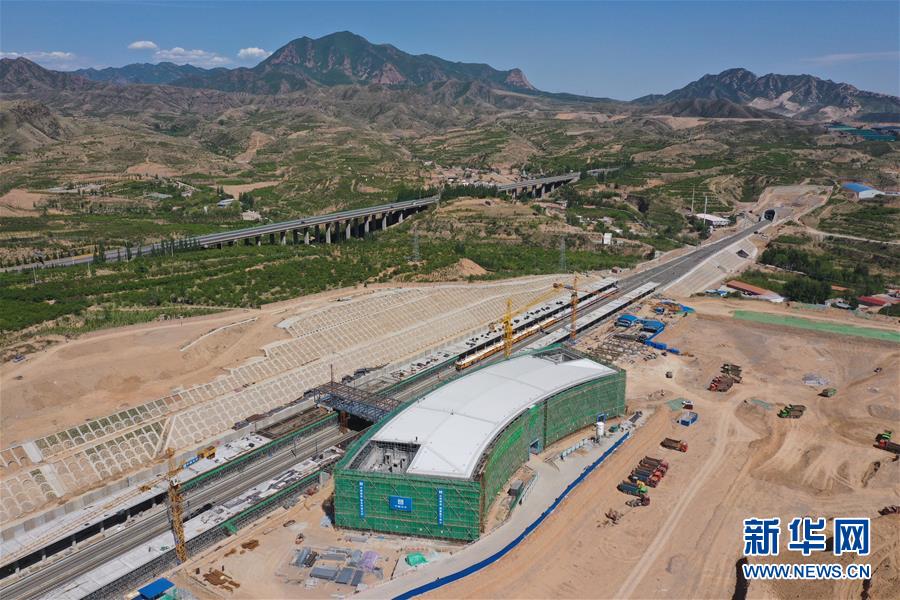 建設(shè)中的京張高鐵下花園北站(5月29日無人機拍攝)。京張高鐵下花園北站是連接京張高鐵和崇禮鐵路的樞紐站,位于下花園城區(qū)北側(cè)偏東,站場規(guī)模設(shè)2站臺5線。目前,下花園北站主體建設(shè)已完工,正在進行內(nèi)外部裝修。新華社記者邢廣利攝