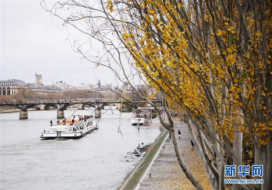 11月27日,在法國(guó)巴黎,游船在塞納河上行駛。新華社記者高靜攝