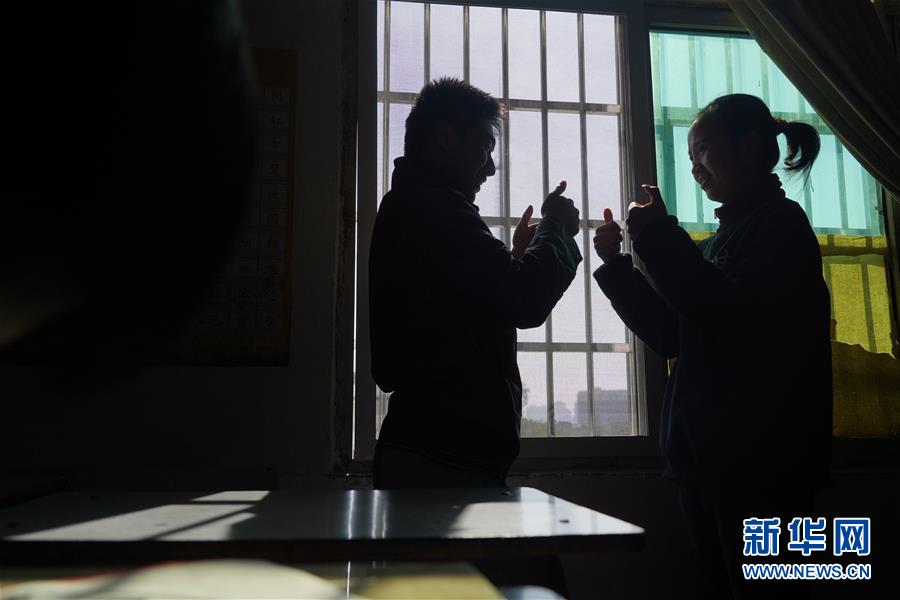 在江西省南昌市三聯(lián)特殊教育學校,兩名學生在課后練習手語(11月22日攝)。