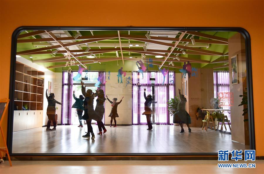 11月13日,市民在成都金牛區(qū)新橋社區(qū)黨群服務中心內(nèi)跳舞。