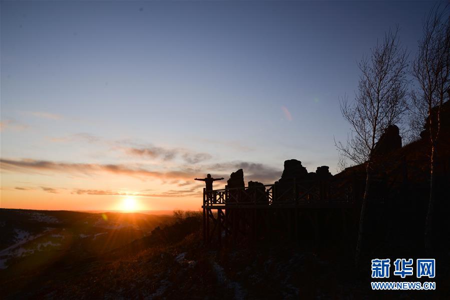 這是11月25日拍攝的克什克騰石陣景區(qū),一名游客張開雙臂面向夕陽。 克什克騰石陣景區(qū)位于內(nèi)蒙古赤峰市克什克騰旗,是國家5A級景區(qū)。冬日黃昏,在落日和晚霞的映襯下,克什克騰石陣景區(qū)一派壯美景象。