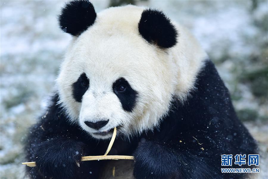 11月29日,在西寧熊貓館內(nèi),一只大熊貓?jiān)诔灾褡印? 新華社記者 吳剛 攝
