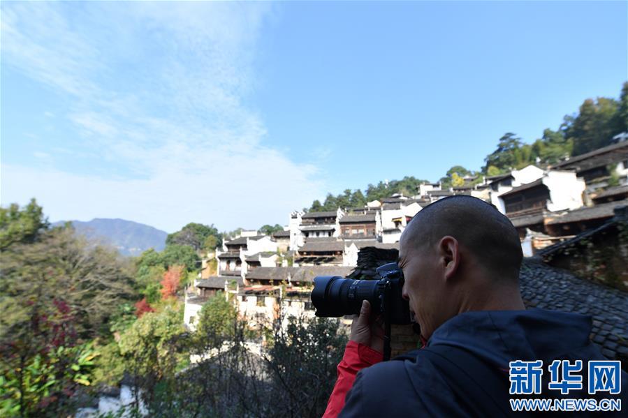 11月6日,鄉(xiāng)村攝影師曹加祥在篁嶺村采風(fēng)。新華社記者胡晨歡攝
