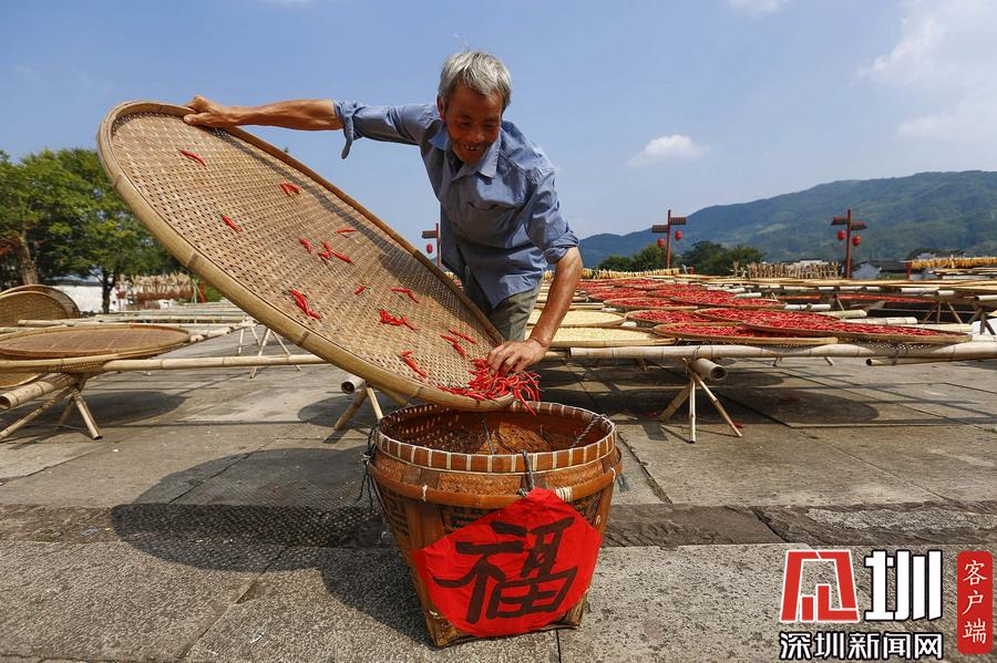 2019年9月9日,安徽黃山,呈坎古村村民在曬場(chǎng)上晾曬農(nóng)作物。