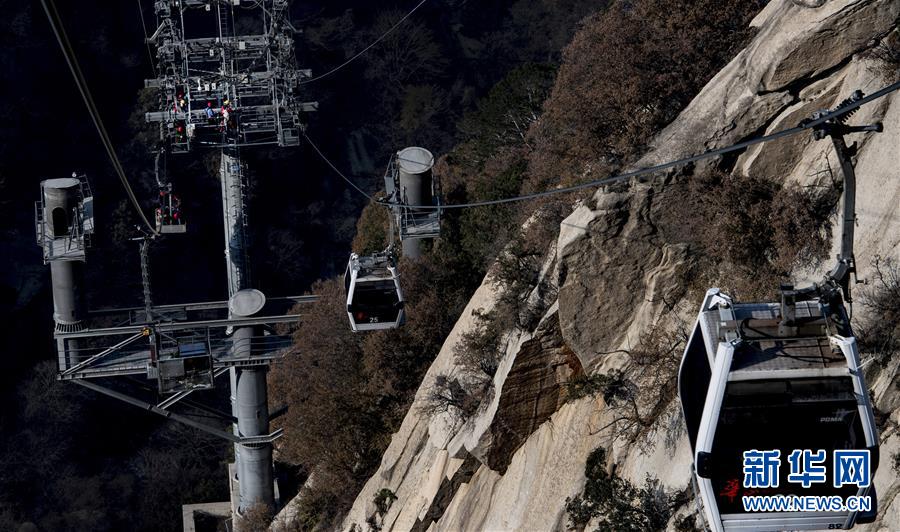 華山自古就被稱為“奇險(xiǎn)天下第一山”。建在華山西峰下的太華索道于2013年4月1日對(duì)外投入運(yùn)營,全長4211米,以直上直下的“W”起伏式走向,沿途跨越四道深谷、三座山峰,最高落差達(dá)894米,其懸空之勢(shì),如天空之梯。坐在近乎全透明的索道吊廂之中,以飛鳥的姿態(tài),俯瞰華山絕壁天險(xiǎn),這條華山“天路”給游客帶來驚險(xiǎn)獨(dú)特的體驗(yàn)。