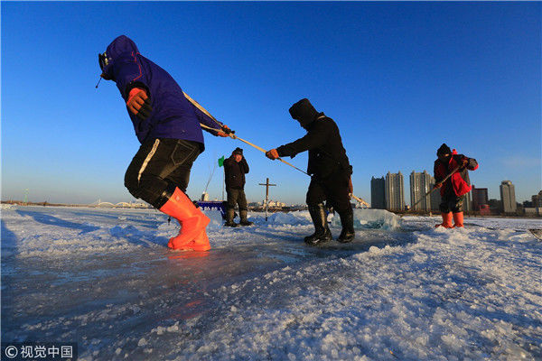 寒冬采冰人:起早貪黑 “淘金”冰雪