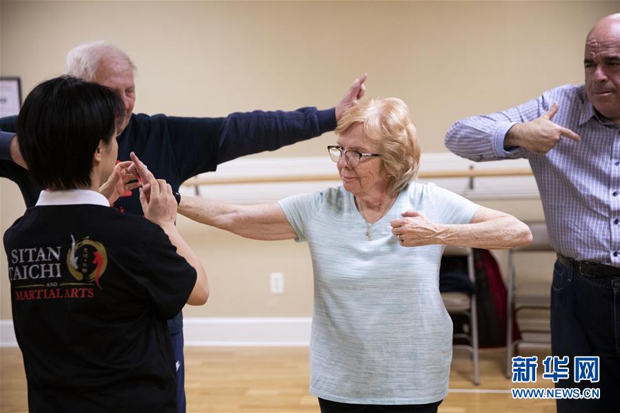 陳思坦的夫人林旭在位于美國(guó)紐約長(zhǎng)島的一所社區(qū)老年活動(dòng)中心指導(dǎo)老人練習(xí)太極(11月20日攝)。這里是陳思坦夫婦開(kāi)設(shè)的一個(gè)公益教學(xué)項(xiàng)目。11月的紐約已進(jìn)入初冬,位于美國(guó)紐約長(zhǎng)島的思坦太極武術(shù)中心依然一片紅火景象,學(xué)員們從5歲的孩童到80多歲的老人,操練著太極拳、太極劍、長(zhǎng)拳等武術(shù)招式。這里的主人陳思坦、林旭夫婦,也從早忙到晚,精心指導(dǎo)每一位學(xué)員的一招一式。6歲習(xí)武,22歲成為中國(guó)全國(guó)冠軍,26歲獲得首個(gè)世界冠軍……直到30歲退役,陳思坦在運(yùn)動(dòng)員生涯中曾獲得過(guò)32次國(guó)內(nèi)外各類武術(shù)大賽冠軍。36歲那年,懷著以太極拳和中國(guó)武術(shù)為媒介向世界推廣中國(guó)文化的夢(mèng)想,陳思坦到美國(guó)紐約尋找新的舞臺(tái)。經(jīng)過(guò)十多年的艱苦打拼,陳思坦夫婦目前在紐約長(zhǎng)島、法拉盛和曼哈頓都開(kāi)設(shè)了長(zhǎng)期的課程,思坦太極注冊(cè)在編的各個(gè)年齡段的學(xué)員近千人,有些“高徒”現(xiàn)在自己也開(kāi)班授課,將太極推向更多地方。陳思坦夫婦現(xiàn)在思考更多的是如何將太極和武術(shù)推廣給更多的美國(guó)人,并讓他們理解其中蘊(yùn)含的平衡、和諧的中國(guó)文化理念。他們創(chuàng)辦了紐約太極健身氣功活動(dòng)日,在各類學(xué)校和社區(qū)開(kāi)設(shè)太極或者武術(shù)課程,并利用美國(guó)的亞太裔文化月和多元文化節(jié)舉行武術(shù)和太極表演和體驗(yàn)課程,讓更多美國(guó)人親眼看到、親身體會(huì)中國(guó)武術(shù)的魅力。從2011年起,他們還參與創(chuàng)辦了紐約太極大賽,如今已舉行九屆,吸引了美國(guó)、加拿大和中國(guó)國(guó)內(nèi)的隊(duì)伍參賽,影響力逐漸擴(kuò)大。新華社記者王迎攝