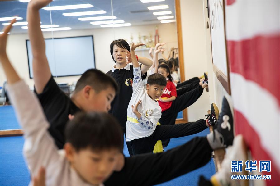 陳思坦的夫人林旭在位于美國紐約長島的思坦太極武術中心指導小學員練習武術(11月20日攝)。11月的紐約已進入初冬,位于美國紐約長島的思坦太極武術中心依然一片紅火景象,學員們從5歲的孩童到80多歲的老人,操練著太極拳、太極劍、長拳等武術招式。這里的主人陳思坦、林旭夫婦,也從早忙到晚,精心指導每一位學員的一招一式。6歲習武,22歲成為中國全國冠軍,26歲獲得首個世界冠軍……直到30歲退役,陳思坦在運動員生涯中曾獲得過32次國內(nèi)外各類武術大賽冠軍。36歲那年,懷著以太極拳和中國武術為媒介向世界推廣中國文化的夢想,陳思坦到美國紐約尋找新的舞臺。經(jīng)過十多年的艱苦打拼,陳思坦夫婦目前在紐約長島、法拉盛和曼哈頓都開設了長期的課程,思坦太極注冊在編的各個年齡段的學員近千人,有些“高徒”現(xiàn)在自己也開班授課,將太極推向更多地方。陳思坦夫婦現(xiàn)在思考更多的是如何將太極和武術推廣給更多的美國人,并讓他們理解其中蘊含的平衡、和諧的中國文化理念。他們創(chuàng)辦了紐約太極健身氣功活動日,在各類學校和社區(qū)開設太極或者武術課程,并利用美國的亞太裔文化月和多元文化節(jié)舉行武術和太極表演和體驗課程,讓更多美國人親眼看到、親身體會中國武術的魅力。從2011年起,他們還參與創(chuàng)辦了紐約太極大賽,如今已舉行九屆,吸引了美國、加拿大和中國國內(nèi)的隊伍參賽,影響力逐漸擴大。新華社記者王迎攝