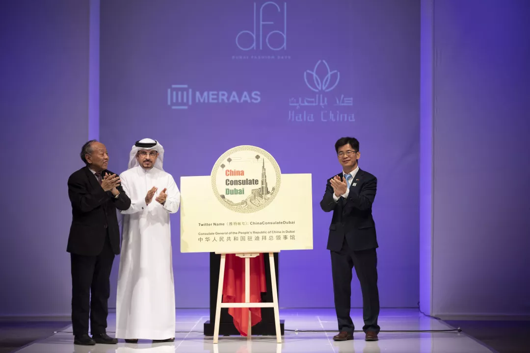 開幕式當(dāng)晚,中國外交部原部長李肇星、謝赫.馬吉德親王和李旭航總領(lǐng)事現(xiàn)場共同揭幕中國迪拜總領(lǐng)館推特賬號,至此,為期5天的DFD“迪拜時尚日”正式拉開了帷幕