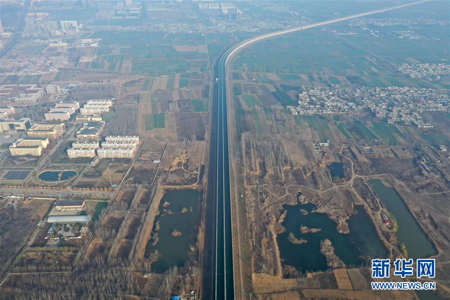 這是12月9日無(wú)人機(jī)拍攝的南水北調(diào)中線總干渠沙河渡槽工程。新華社記者馮大鵬攝