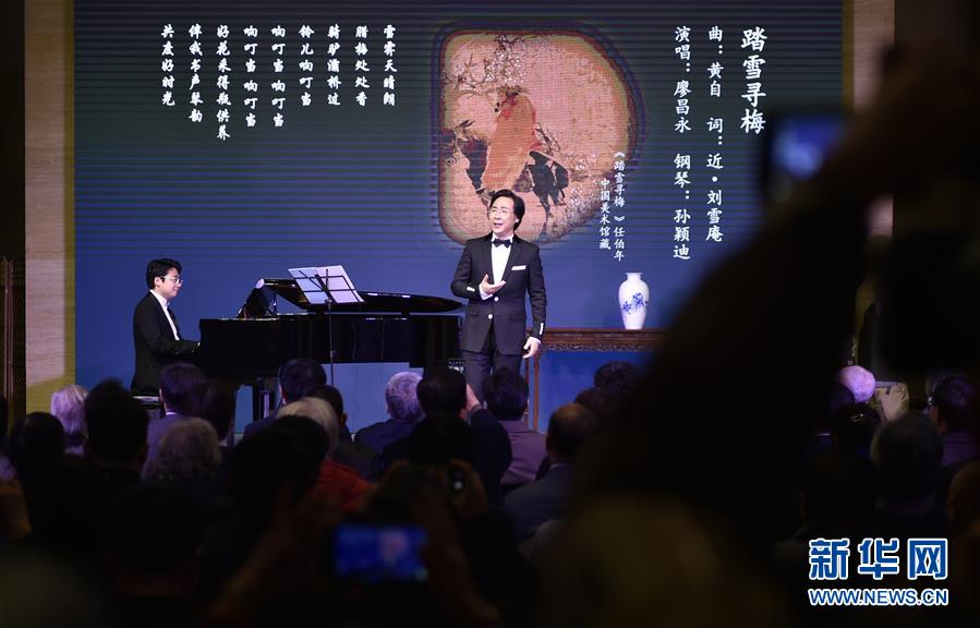 12月10日晚,廖昌永在音樂會上演唱《踏雪尋梅》。 當晚,中國古典詩詞與書畫——廖昌永中國藝術(shù)歌曲獨唱音樂會在北京中國美術(shù)館舉行。 新華社記者 魯鵬 攝