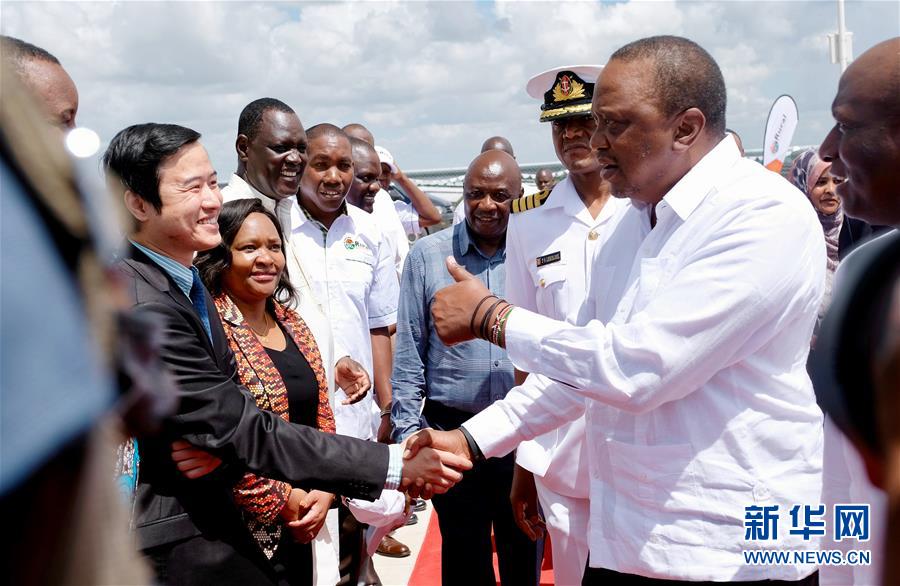 12月13日,在肯尼亞加里薩郡,肯尼亞總統(tǒng)烏胡魯·肯雅塔(右)出席光伏發(fā)電站投運(yùn)啟動(dòng)儀式。 中企承建的東非最大光伏電站肯尼亞加里薩50兆瓦光伏發(fā)電站13日正式投入運(yùn)營(yíng)??夏醽喛偨y(tǒng)肯雅塔在投運(yùn)啟動(dòng)儀式上致辭說(shuō),這一電站將為加里薩帶來(lái)穩(wěn)定供電,助力當(dāng)?shù)亟?jīng)濟(jì)發(fā)展。 新華社記者 楊臻 攝