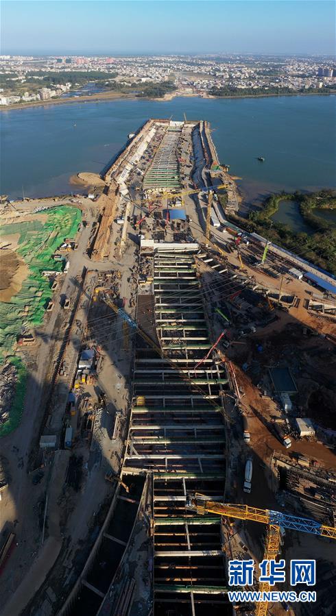 正在施工的??谖拿鳀|越江通道項(xiàng)目(12月14日無(wú)人機(jī)拍攝)。 海口文明東越江通道項(xiàng)目是連接??谥鞒菂^(qū)和江東新區(qū)的重要紐帶,2018年底開(kāi)工,全長(zhǎng)4.38千米,其中隧道段2.72千米。據(jù)了解,目前項(xiàng)目總工程量已過(guò)半,將力爭(zhēng)在2020年4月份建成并實(shí)現(xiàn)功能性通車(chē)。 新華社記者 郭程 攝