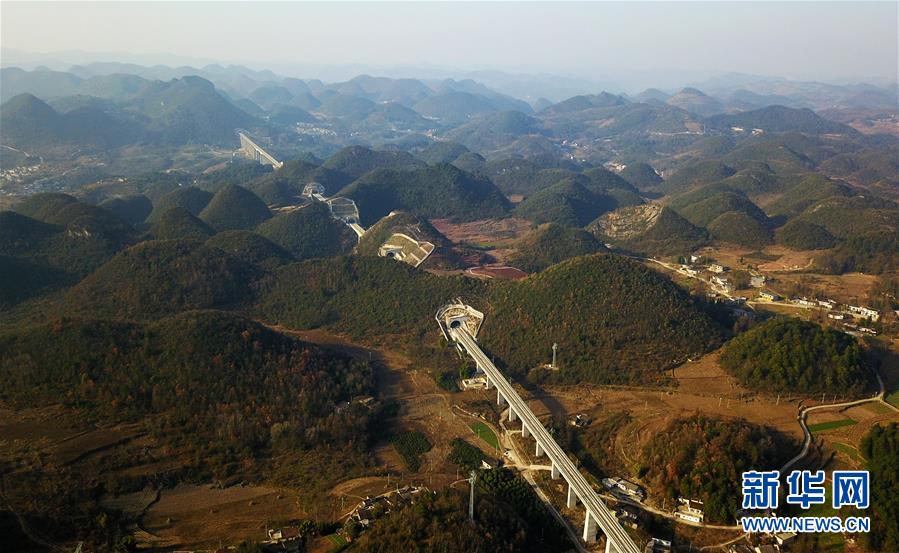 這是12月15日無(wú)人機(jī)拍攝的成貴高鐵貴州清鎮(zhèn)段。新華社記者楊文斌攝