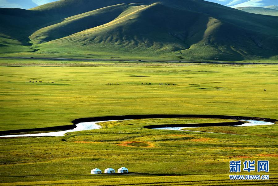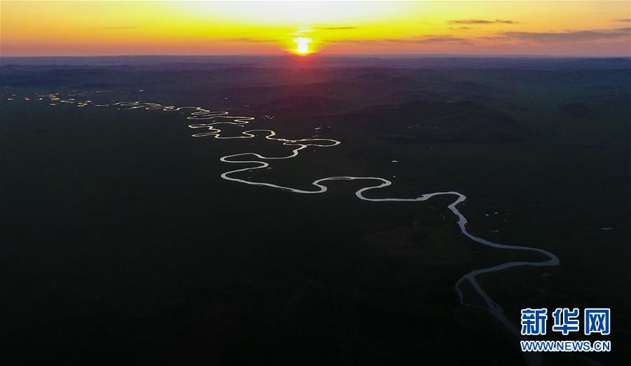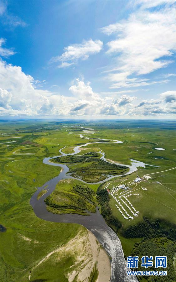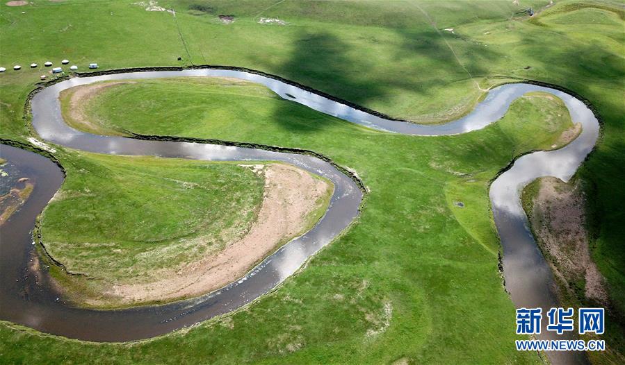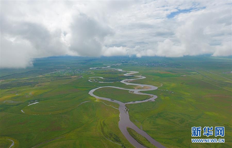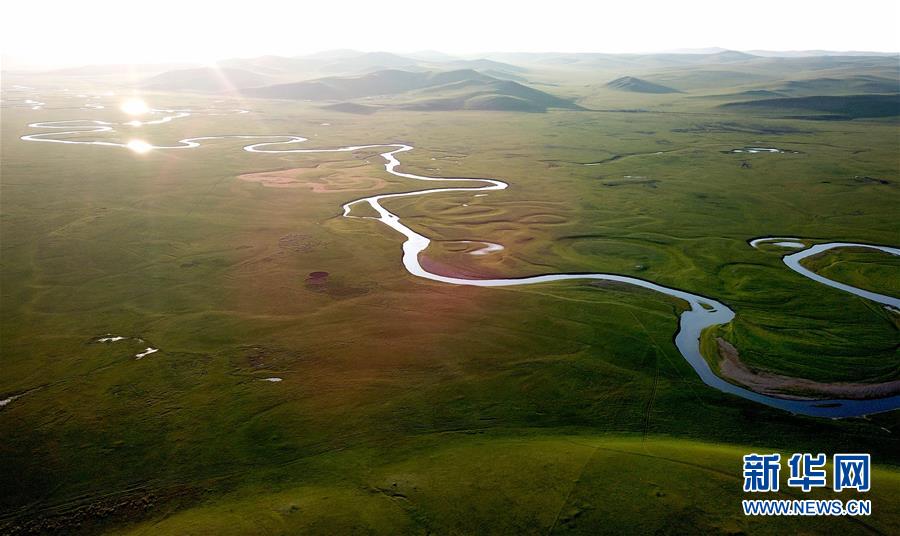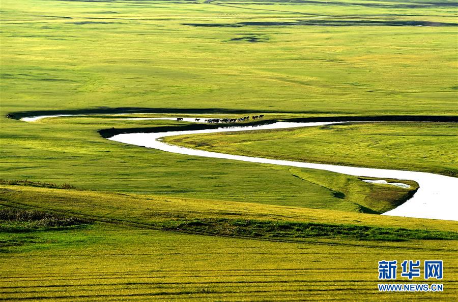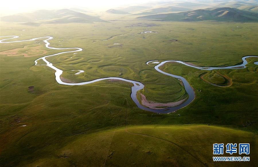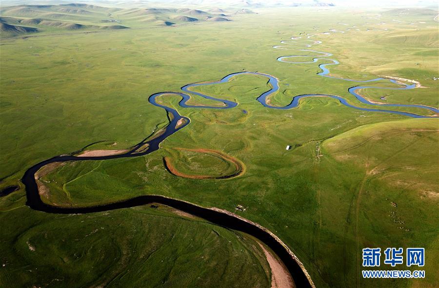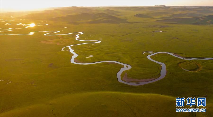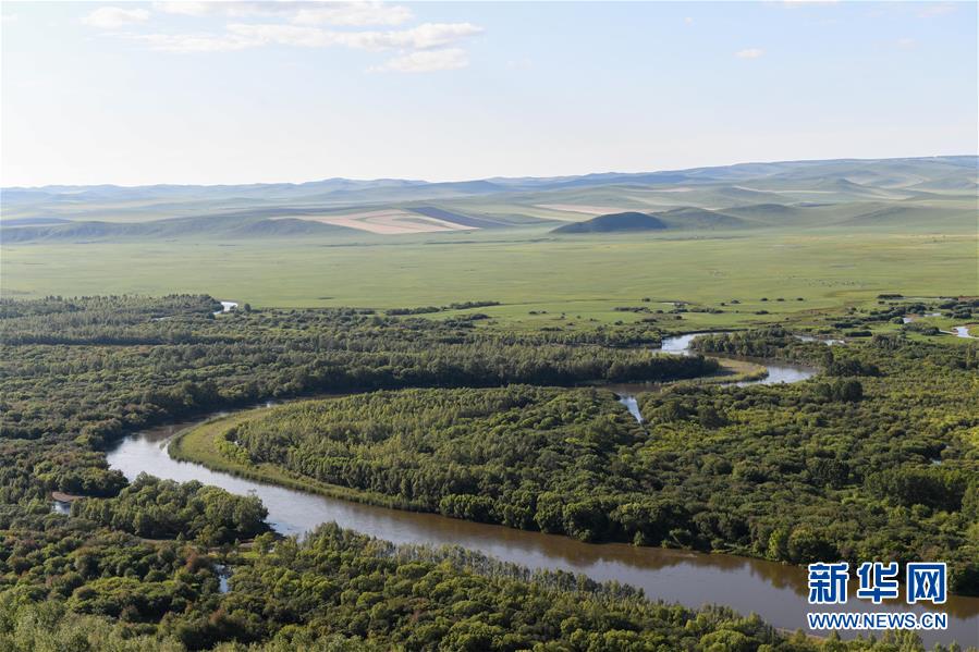 8月26日無人機拍攝的伊敏河。伊敏河流經呼倫貝爾草原。新華社記者彭源攝