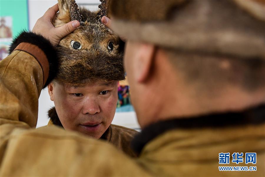12月10日,在古里鄉(xiāng)非遺傳習所,鄂倫春族人吳曲忠在整理皮毛制品。新華社記者劉磊攝