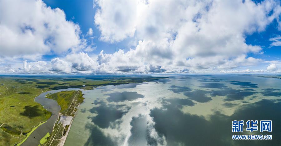 8月28日無人機拍攝的呼倫湖國家級自然保護區(qū)。新華社記者任軍川攝