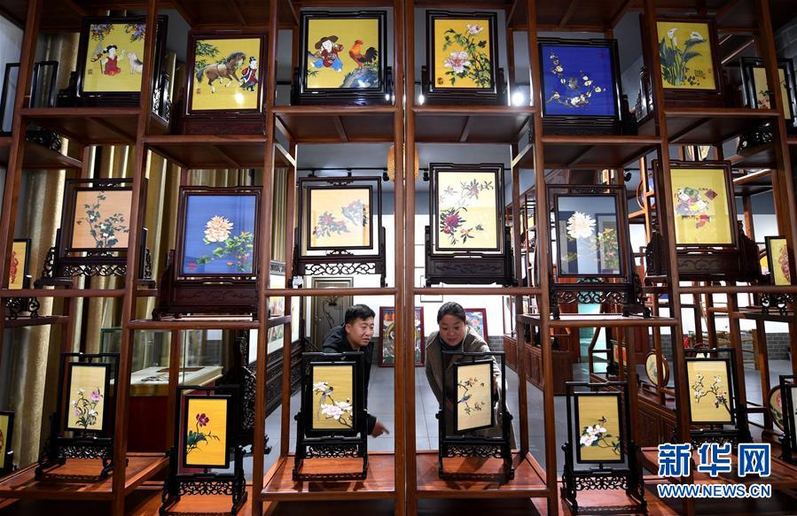 12月14日,在河北定州緙絲傳習(xí)基地,工作人員(右)在給游客介紹緙絲作品。定州緙絲是一種以蠶絲為原料,采用“通經(jīng)斷緯”技法織成的雙面平紋織物,工藝繁雜,經(jīng)得起摸、擦、揉、搓、洗,有著“千年不壞的藝術(shù)織品”之譽(yù),2013年被列入河北省第五批非物質(zhì)文化遺產(chǎn)名錄。近年來,河北定州積極推介緙絲,促進(jìn)緙絲產(chǎn)業(yè)發(fā)展。  新華社記者 王曉 攝