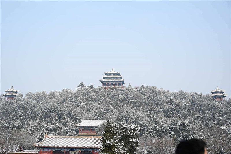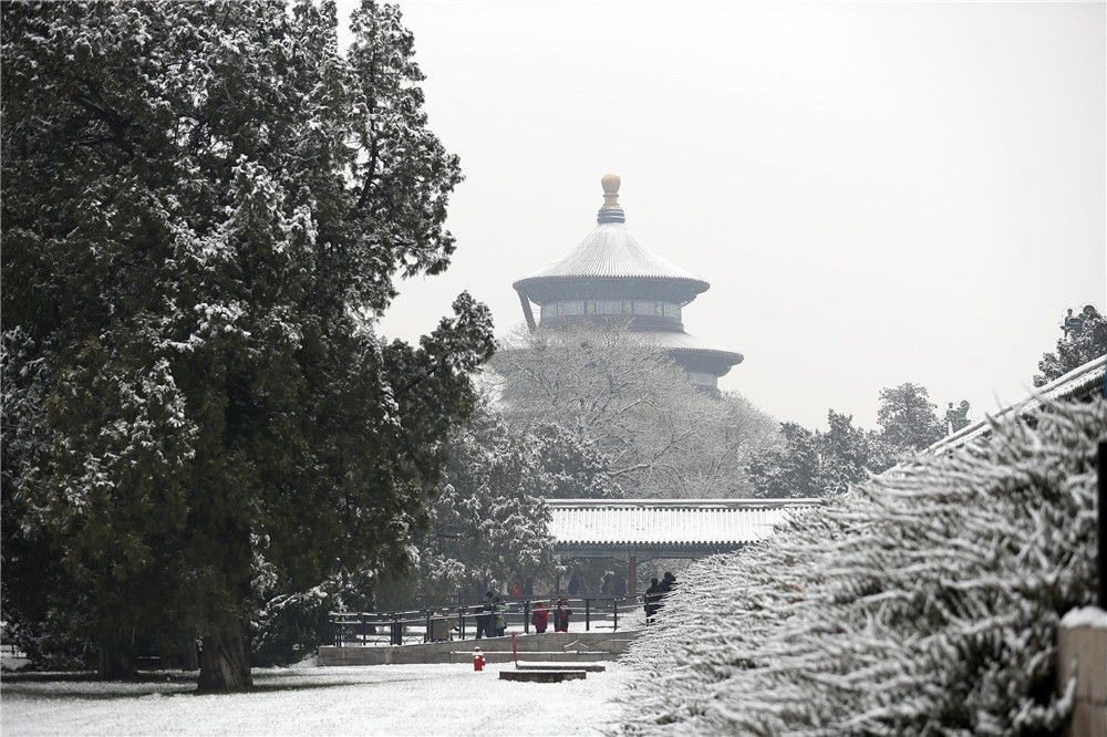 2019年11月30日,北京,天壇公園里觀雪賞景的市民絡(luò)繹不絕。喬?。垐D像/視覺中國