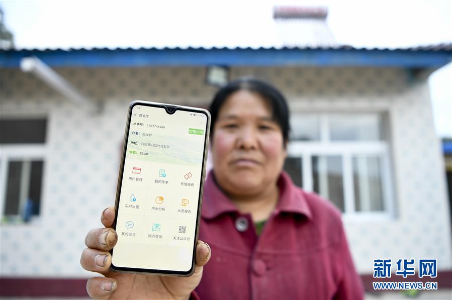 在寧夏固原市彭陽縣白陽鎮(zhèn)白岔村,村民展示可以“手機(jī)買水”的界面(10月11日攝)。  新華社記者 馮開華 攝