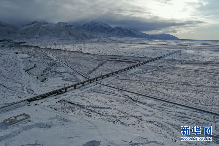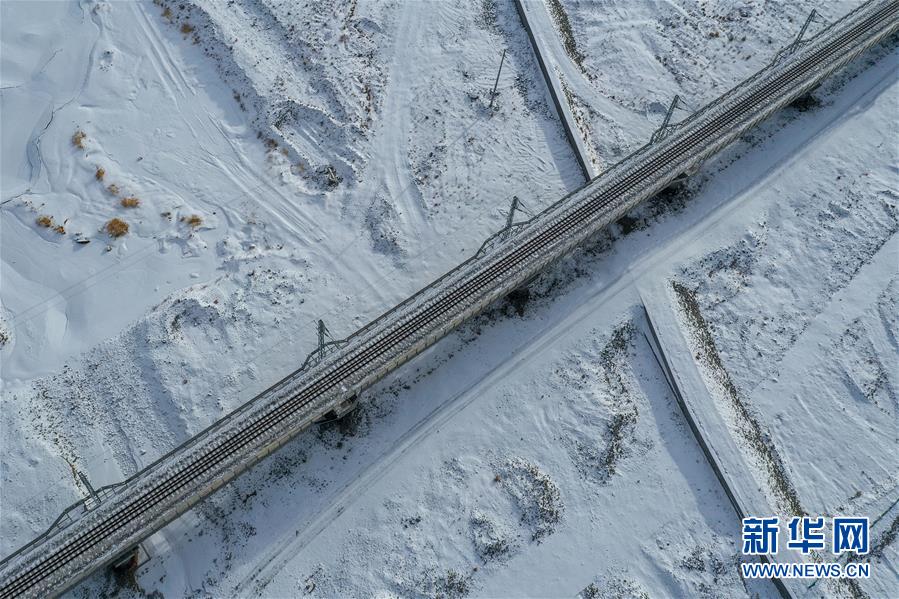 這是12月16日無(wú)人機(jī)拍攝的敦煌鐵路大柴旦站附近的一處鐵路橋。新華社記者張龍攝