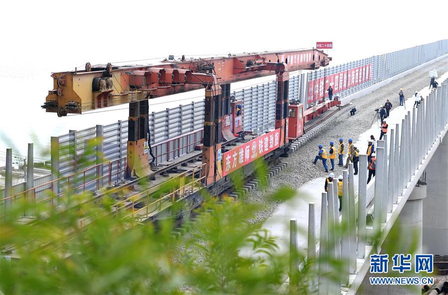 12月22日,中鐵二十四局工作人員在平潭海峽公鐵大橋鋪軌施工現(xiàn)場進(jìn)行鋪軌作業(yè)。當(dāng)日,總長為16.34公里的福平鐵路平潭海峽公鐵大橋鋪軌正式啟動。平潭海峽公鐵大橋是福州至平潭鐵路控制性工程,上層設(shè)計(jì)為時速100公里的六車道高速公路,下層為設(shè)計(jì)時速200公里的高鐵,大橋計(jì)劃2020年正式通車。新華社記者林善傳攝